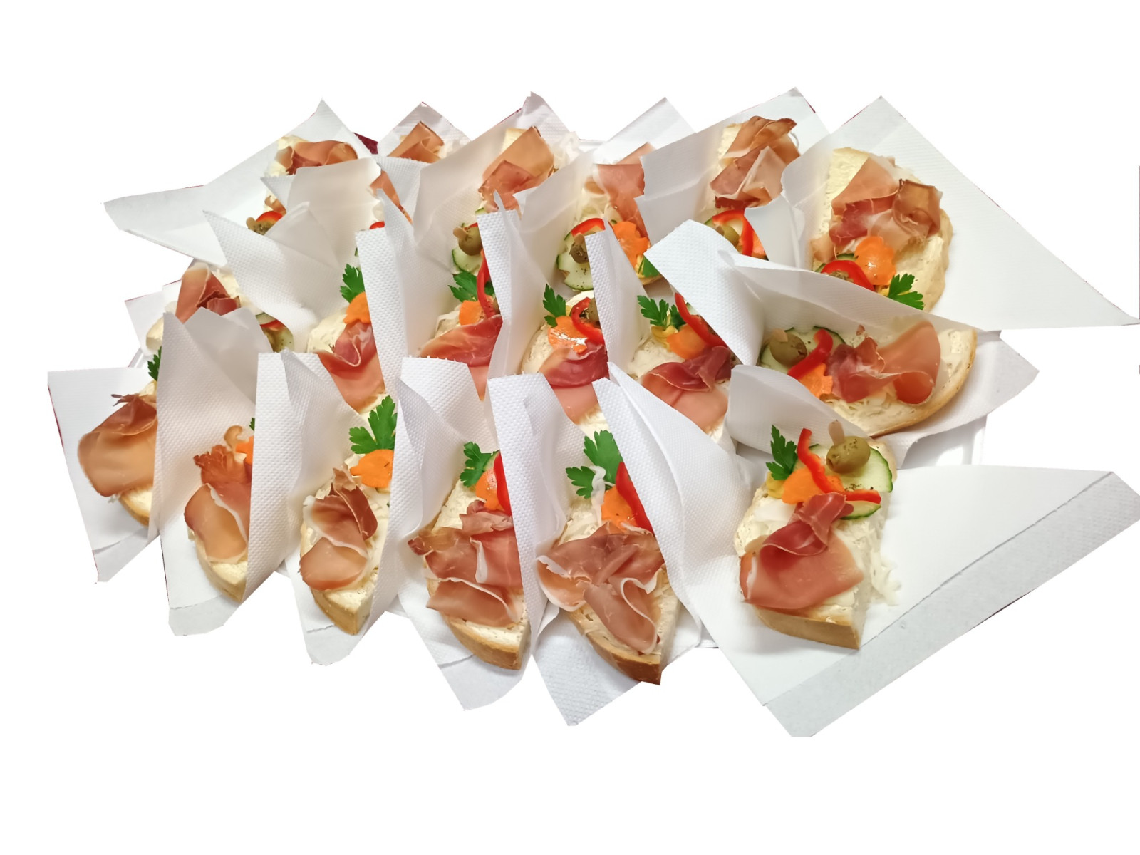 Ízléses tálcán szalvétával szállítjuk. A termék asztalra, tálalásra kész állapotban érkezik.